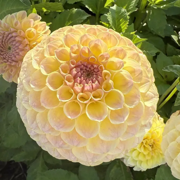 Pompon dahlia’s lijken op baldahlia’s, maar zijn kleiner en compacter. Ze hebben een bolvormige bloem met strak opgerolde bloemblaadjes. Ook hier geldt: hoe voller de bloem, hoe minder toegankelijk voor bijen. Door hun gesloten structuur bieden pompon dahlia’s nauwelijks nectar of stuifmeel maar wel een drinkbakje!