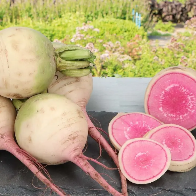 Radijs: in ons assortiment vind je twee soorten, de Chinese en een kleurrijke mix radijsjes. De bijzondere Chinese radijs kan al vanaf half maart gezaaid worden in de volle grond en groeit snel.