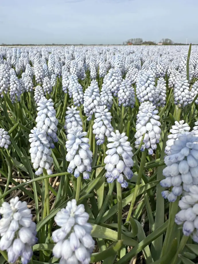 - Muscari (beter bekend als blauwe druifjes): Hommels vliegen massaal op de muscari af zodra ze bloeien.